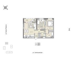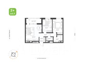 2,5-комнатная квартира для семьи с ребёнком; Кухня-гостиная с возможностью зонирования мест для готовки и отдыха; Просторные спальни в которых легко расставить мебель для отдыха и работы; Большое количество гардеробных ниш сможет вместить основной объём вещей и не тратиться на дополнительные шкафы и комоды; На лоджии легко организовать зону релакса или место хранения; Два санузла