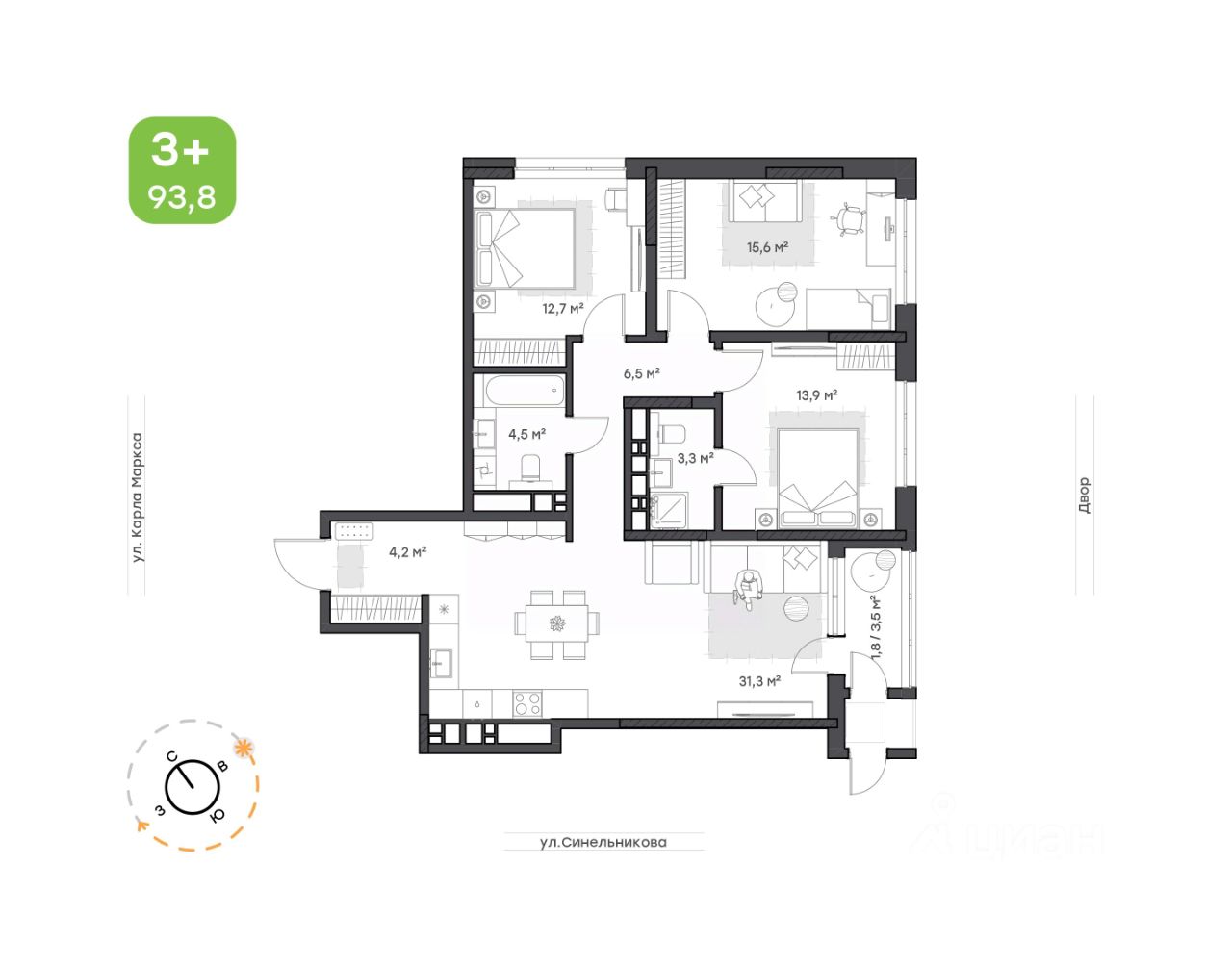 93,8 м²