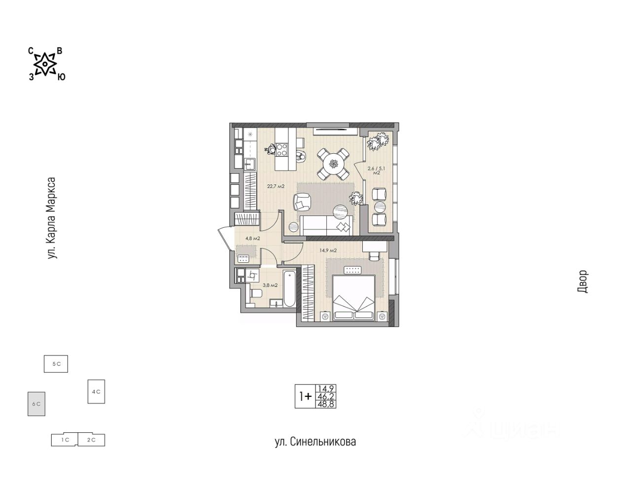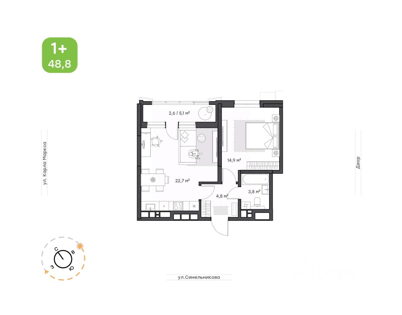 1,5-комнатная квартира для молодой пары и людей, ценящих спокойную и уединенную жизнь;