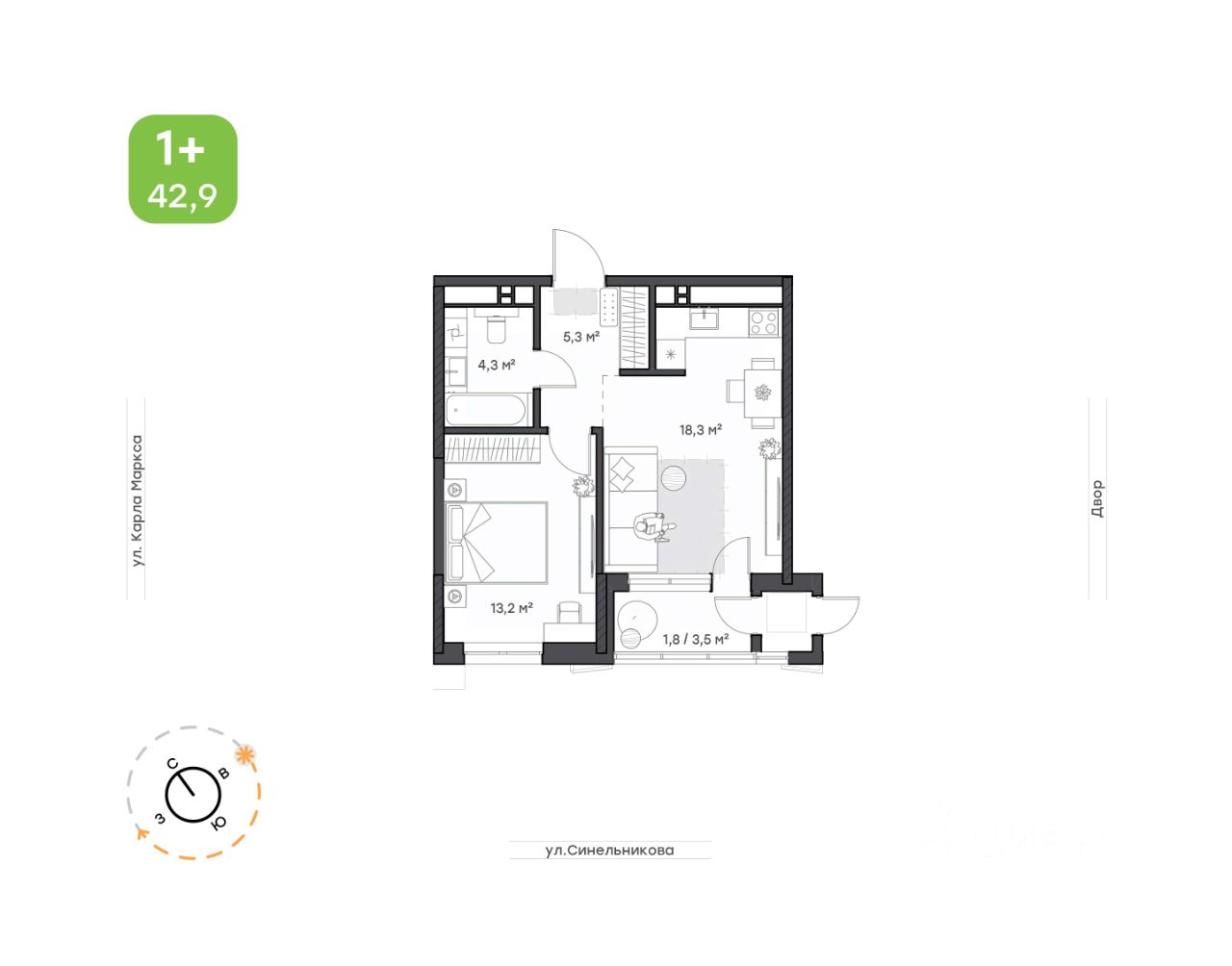 1,5-комнатная квартира для молодой пары и людей, ценящих спокойную и уединенную жизнь;