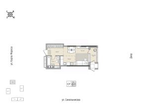 Компактная студия для молодой пары и людей, ценящих спокойную и уединённую жизнь;