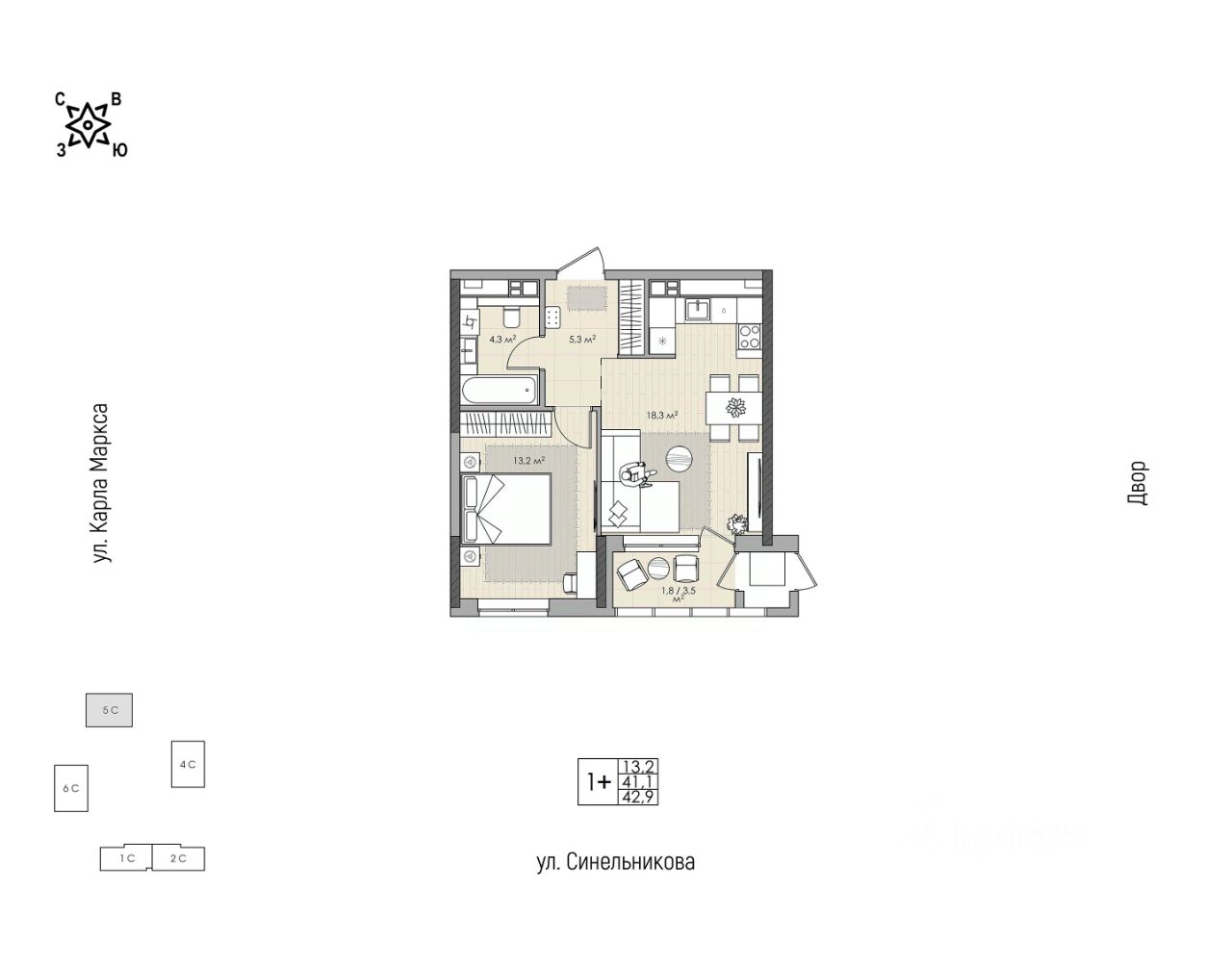 Однокомнатная квартира евроформата. Приготовьте любимое печенье в уединенной обстановке кухни-ниши и соберитесь с семьей в гостиной за чаем. Выходите на лоджию, чтобы полюбоваться городом.