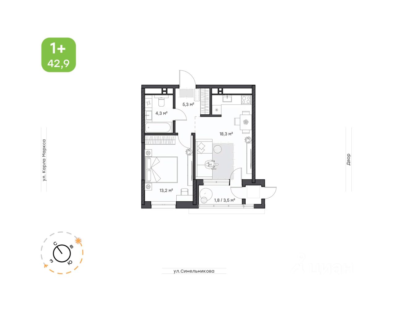 Однокомнатная квартира евроформата. Приготовьте любимое печенье в уединенной обстановке кухни-ниши и соберитесь с семьей в гостиной за чаем. Выходите на лоджию, чтобы полюбоваться городом.