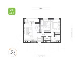 Общая площадь64,9 м²