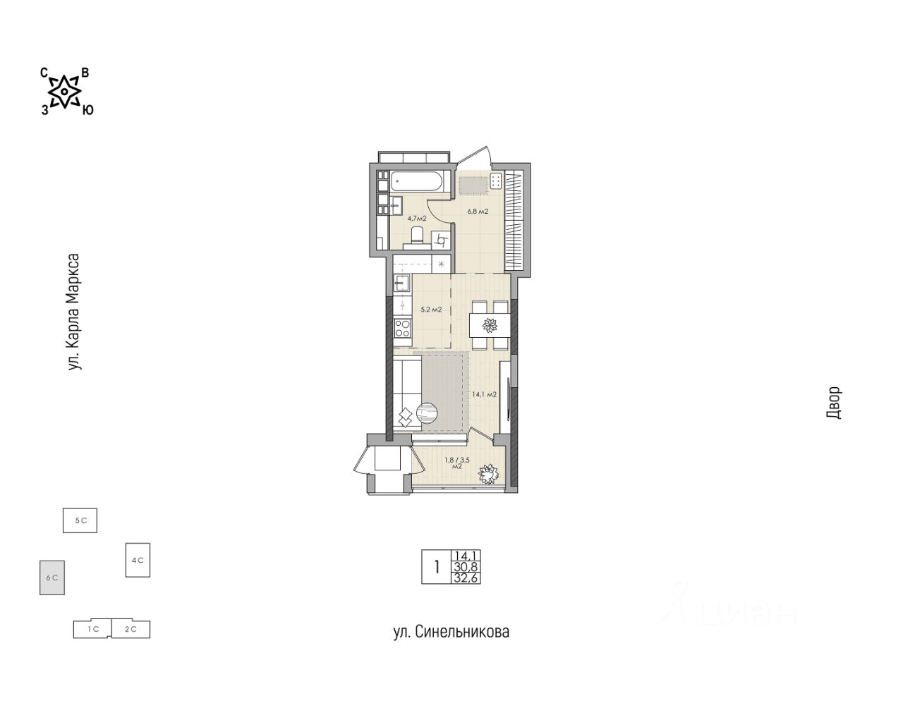Основная комната позволяет с комфортом расставить мебель для готовки, отдыха и приёма гостей;