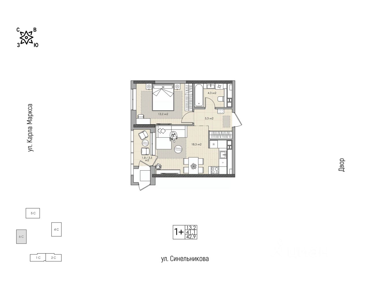 Запросите доступ к 3D туру по планировке, холлам или двору, в котором можно: