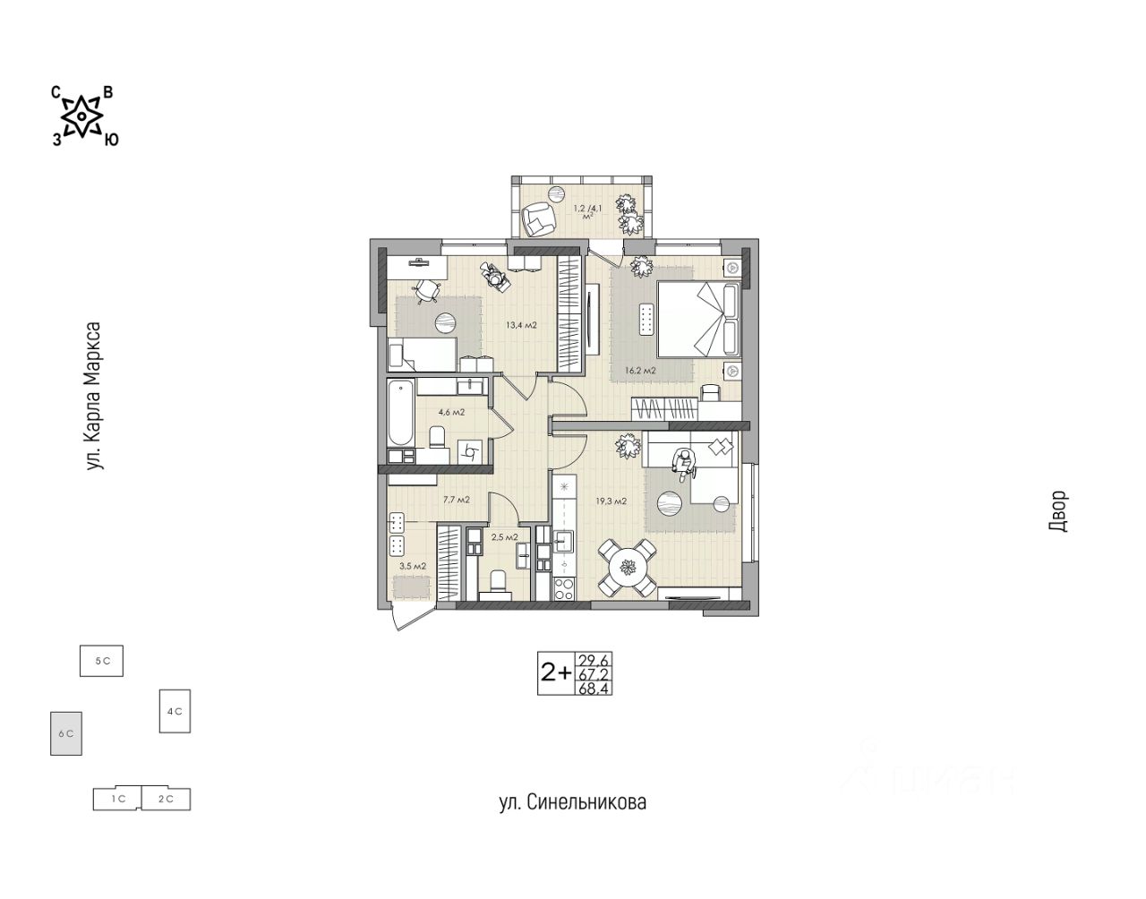Окна на две стороны света обеспечат квартиру естественным освещением;