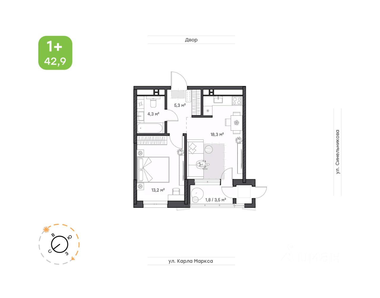 1,5-комнатная квартира для молодой пары и людей, ценящих спокойную и уединенную жизнь;