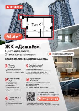 Уважаемые ценители безупречного качества жизни, позвольте представить вам не просто квартиры, а частную недвижимость комфорт-класса в самом центре Хабаровска. ЖК "Дежнев" — это эталон современной жизни, где каждая деталь создана для вашего абсолютного комфорта и спокойствия.