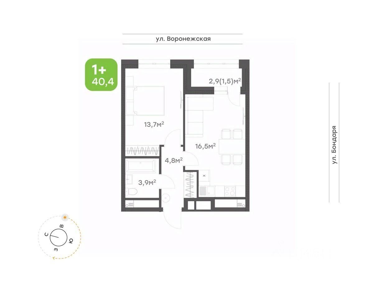• Функциональность и ничего лишнего • Оптимально для молодой семьи, холостяков и семьи, у которой дети выросли и живут отдельно • Просторная кухня-гостиная с выходом на лоджию, в котором можно обустроить кабинет или зону отдыха • Спальня правильной формы с нишей под гардероб • Прихожая с нишей под шкаф-купе • Совмещенный санузел 3,9 кв. м.