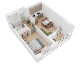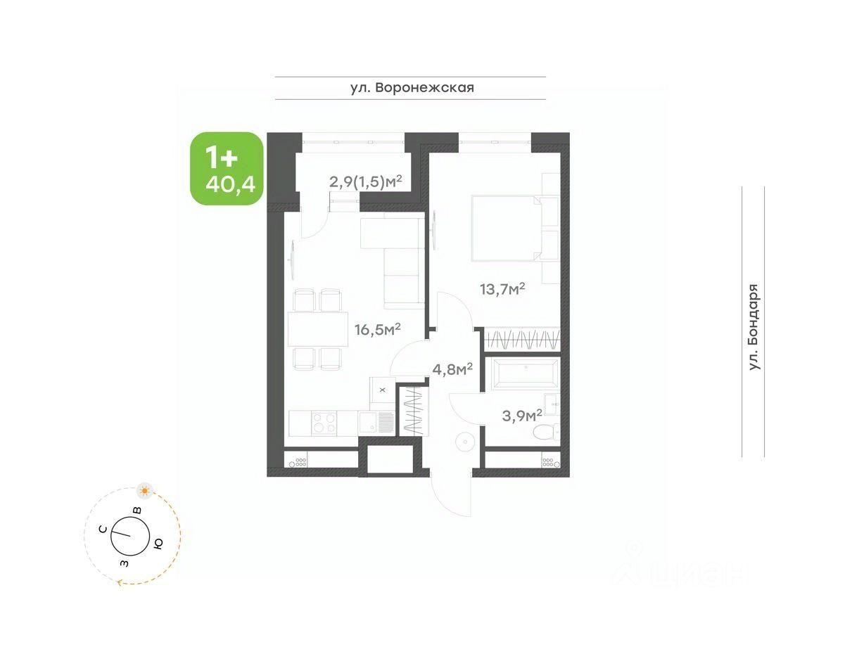 • Функциональность и ничего лишнего • Оптимально для молодой семьи, холостяков и семьи, у которой дети выросли и живут отдельно • Просторная кухня-гостиная с выходом на лоджию, в котором можно обустроить кабинет или зону отдыха • Спальня правильной формы с нишей под гардероб • Прихожая с нишей под шкаф-купе • Совмещенный санузел 3,9 кв. м.