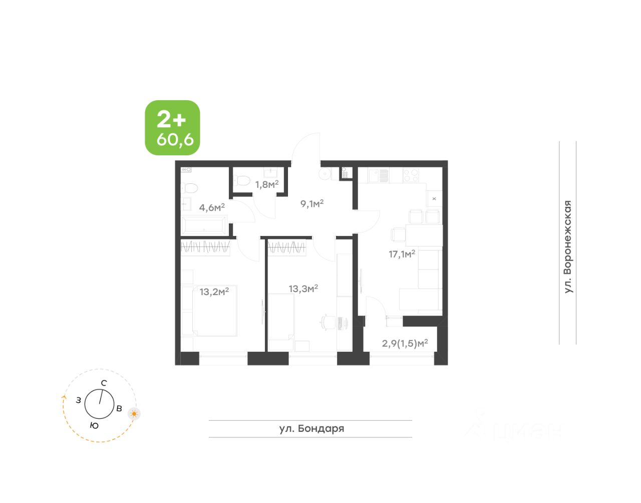 • Кухня-гостиная 17,1 кв.м с выходом на лоджию станет идеальным местом для семейного отдыха и общения;
