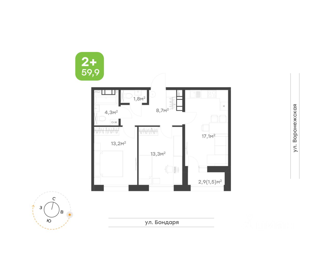 • Кухня-гостиная 17,1 кв.м с выходом на лоджию станет идеальным местом для семейного отдыха и общения;