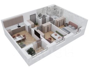 • Две спальни с нишей для гардероба, шкафа, рабочего места или стеллажа;