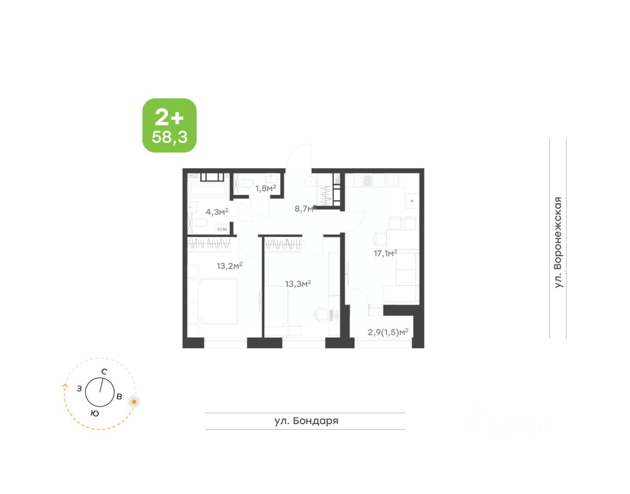 • Две спальни с нишей для гардероба, шкафа, рабочего места или стеллажа;