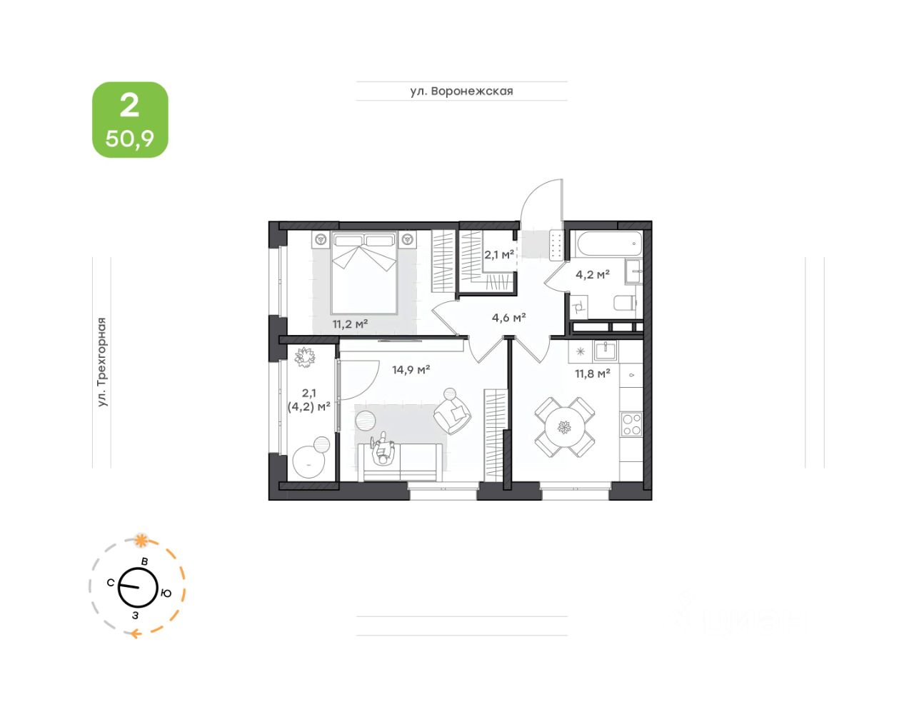 Общая площадь50,9 м²