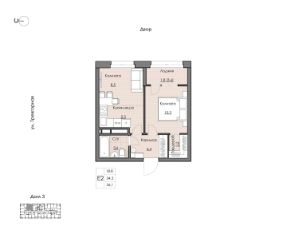 1,5-комнатная квартира для молодой семьи и людей, ценящих спокойную и уединенную жизнь; Мастер-спальня с гардеробной; Кухня-гостиная с зонированием мест для готовки и отдыха; Широкая лоджия станет отличным местом для релакса или хранения