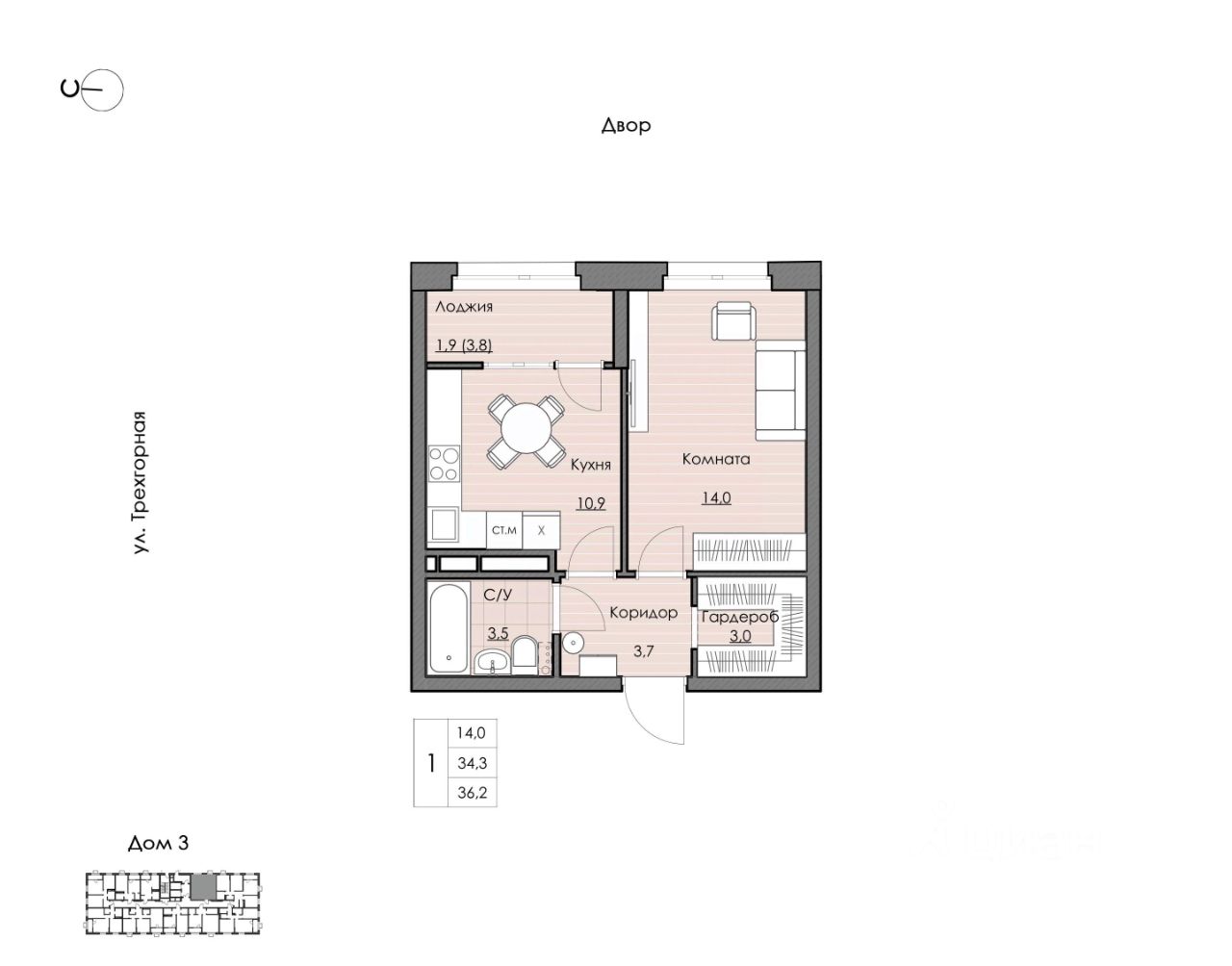 Классическая планировка однокомнатной квартиры с важными улучшениями;
