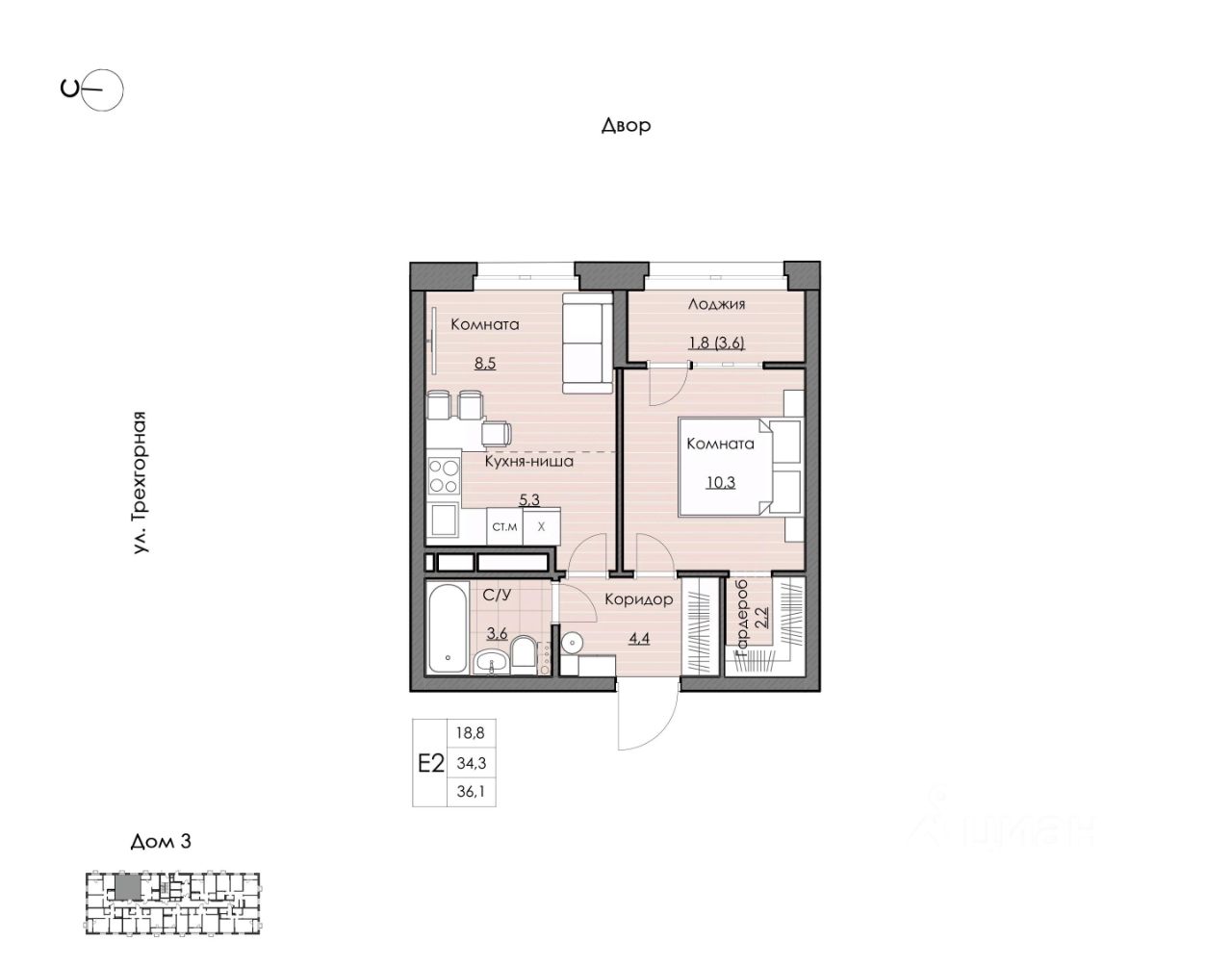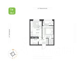 1,5-комнатная квартира для молодой семьи и людей, ценящих спокойную и уединенную жизнь; Мастер-спальня с гардеробной; Кухня-гостиная с зонированием мест для готовки и отдыха; Широкая лоджия станет отличным местом для релакса или хранения