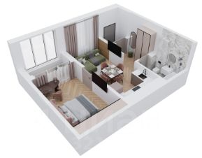 • Просторная кухня-гостиная с нишей под гарнитур и возможностью установить барную стойку;