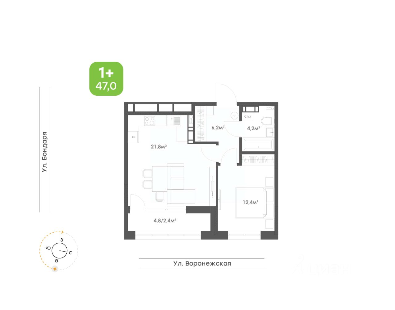 Современная однокомнатная квартира евроформата с окнами на ул. Воронежскую с функциональной планировкой