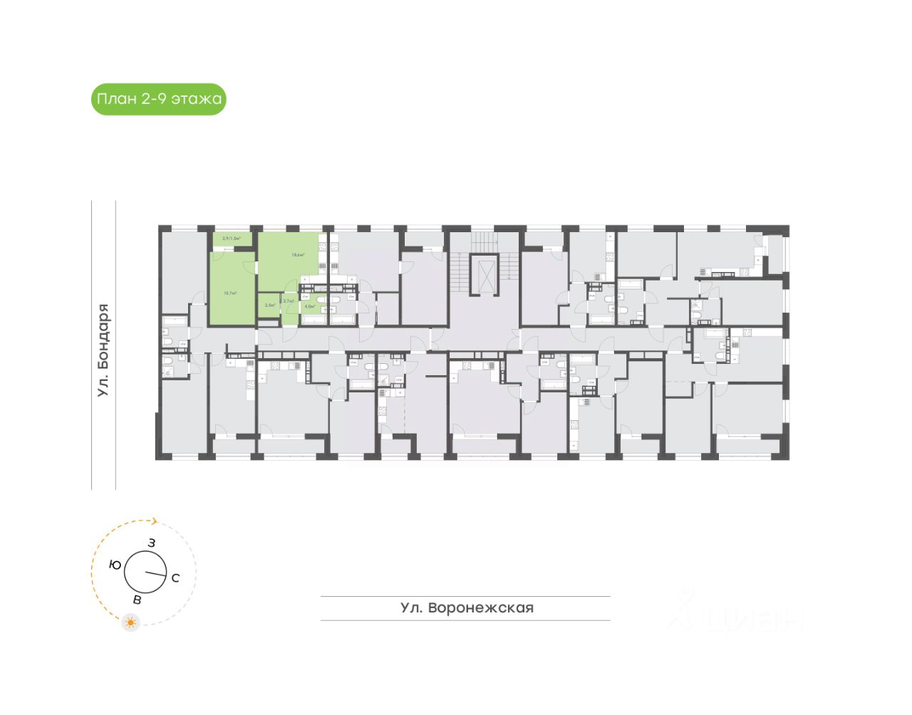 • Большая кухня-гостиная 18,6 кв.м с двумя окнами создаст удобное пространство для общения и кулинарных экспериментов;