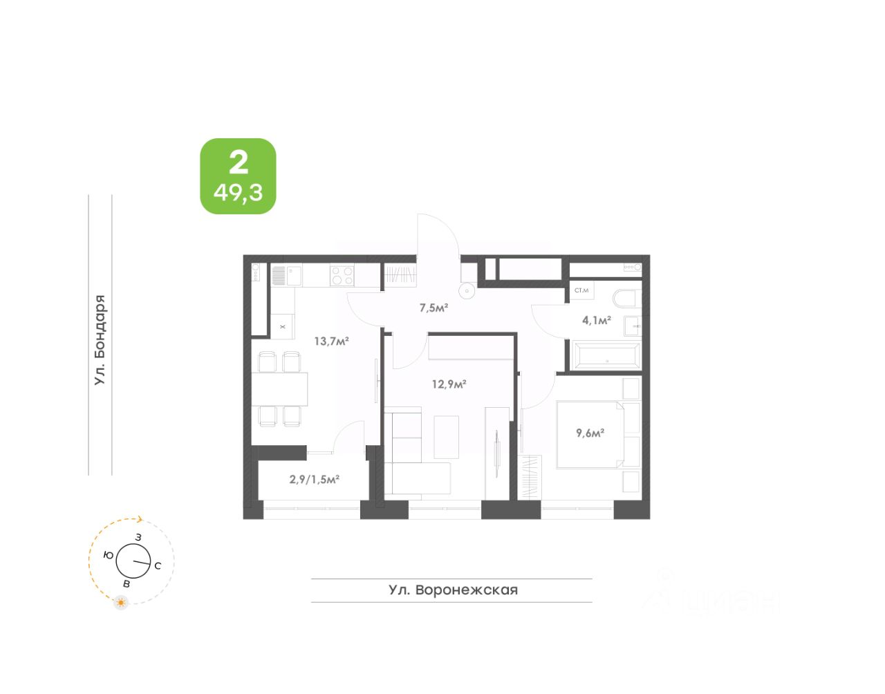 Уютная 2-комнатная квартира с окнами, выходящими на улицу Воронежскую, сочетает комфорт и функциональность.