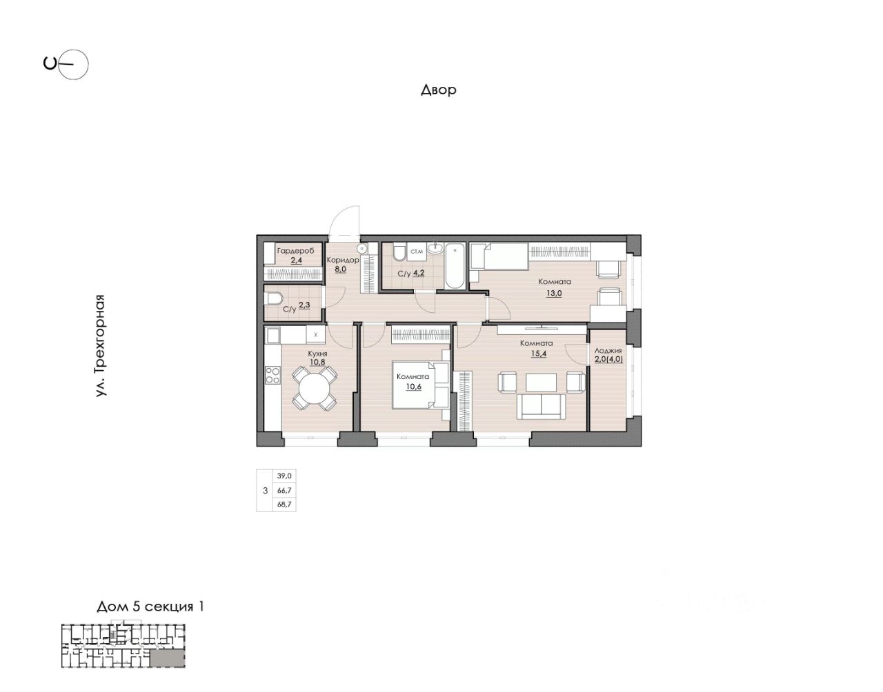 Окна выходят на две стороны света. В квартире 2 санузла для комфорта утренних сборов на работу.