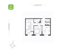 Общая площадь54,9 м²
