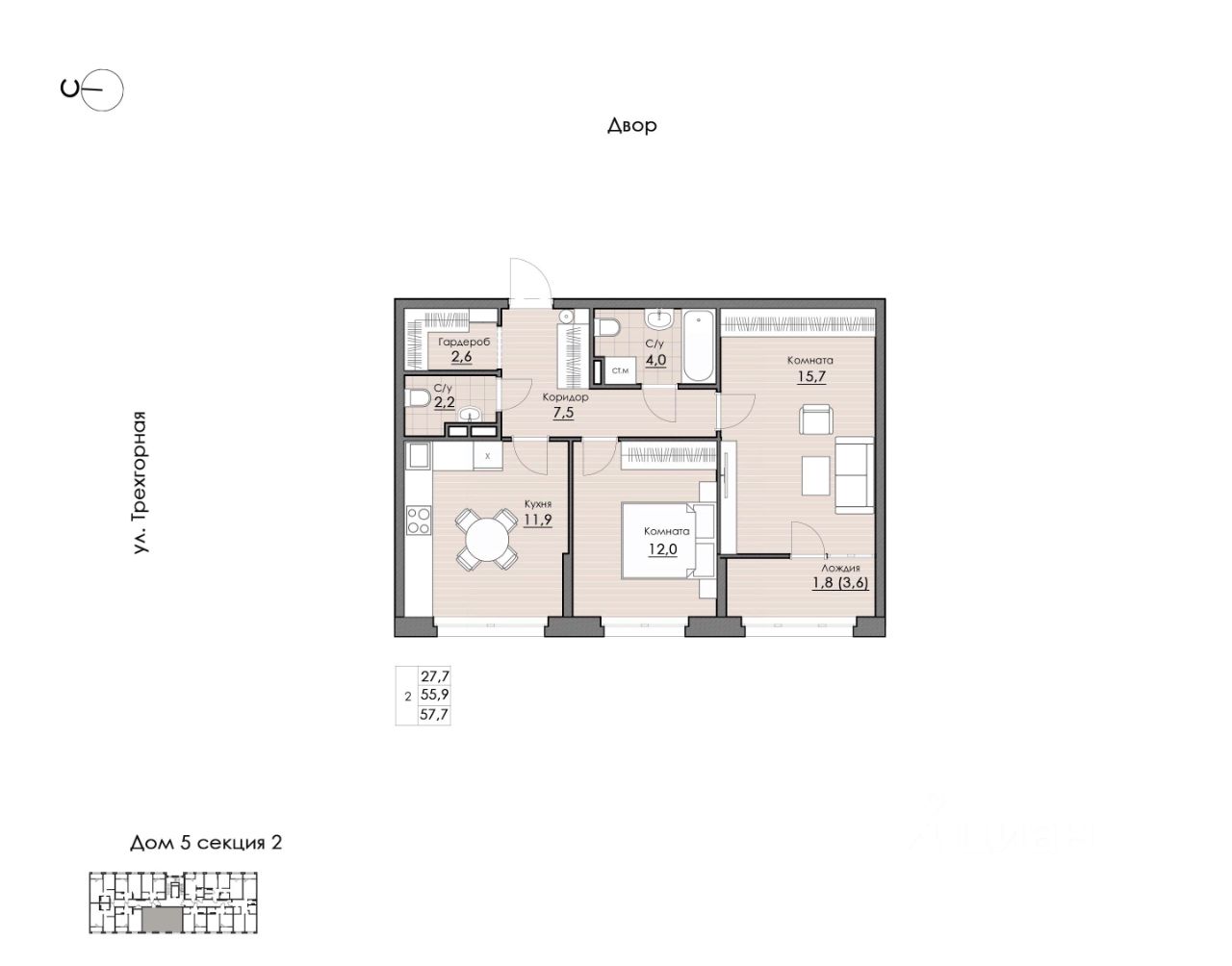 В квартире гардеробная комната, все окна выходят на бульвар.