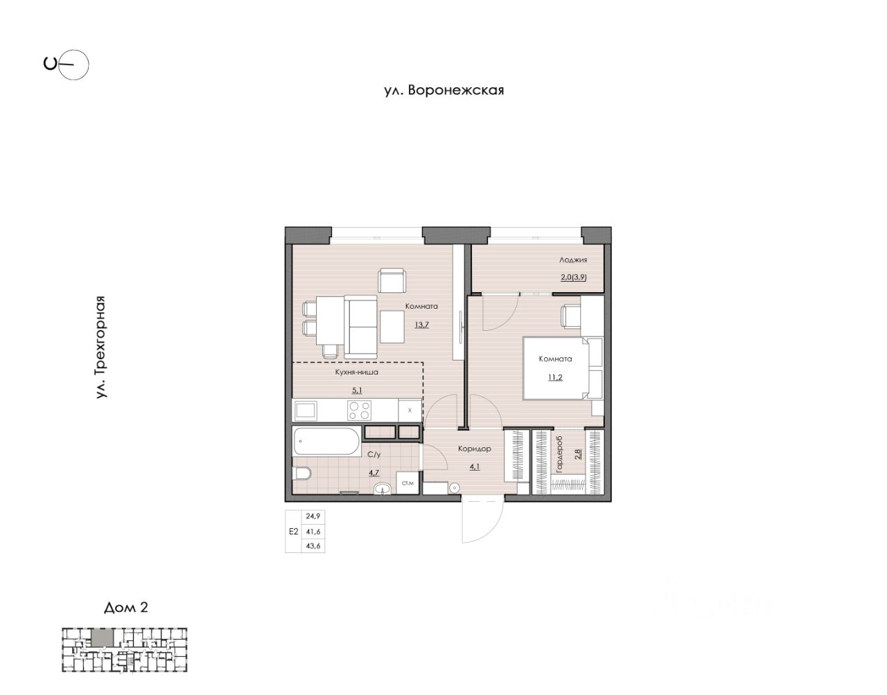1,5-комнатная квартира для молодой семьи и людей, ценящих спокойную и уединенную жизнь;