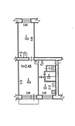 - общая площадь 44,7 кв. м, жилая 29,8 кв. м, кухня 5,9 кв. м;