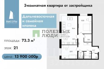 Прямая сделка с застройщиком без дополнительных комиссий - ПОДХОДЯТ ДАЛЬНЕВОСТОЧНАЯ И СЕМЕЙНАЯ ИПОТЕКИ.
