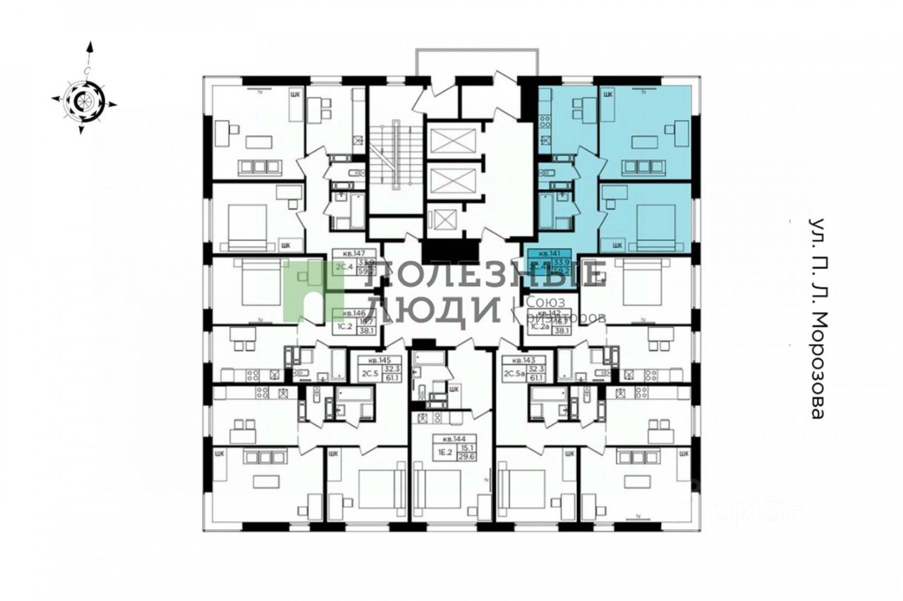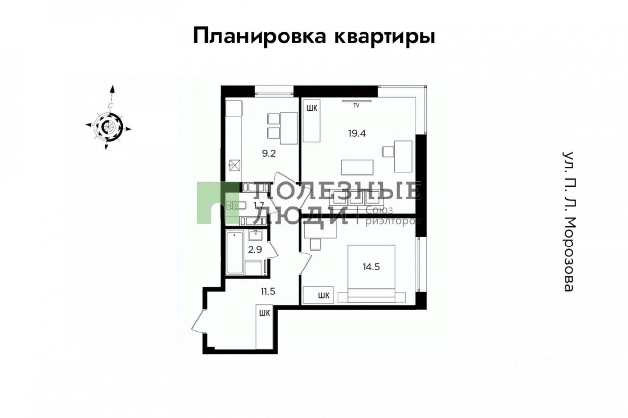 Окна выходят в сторону ул. Павла Морозова и центра города (северо-восточная сторона света).