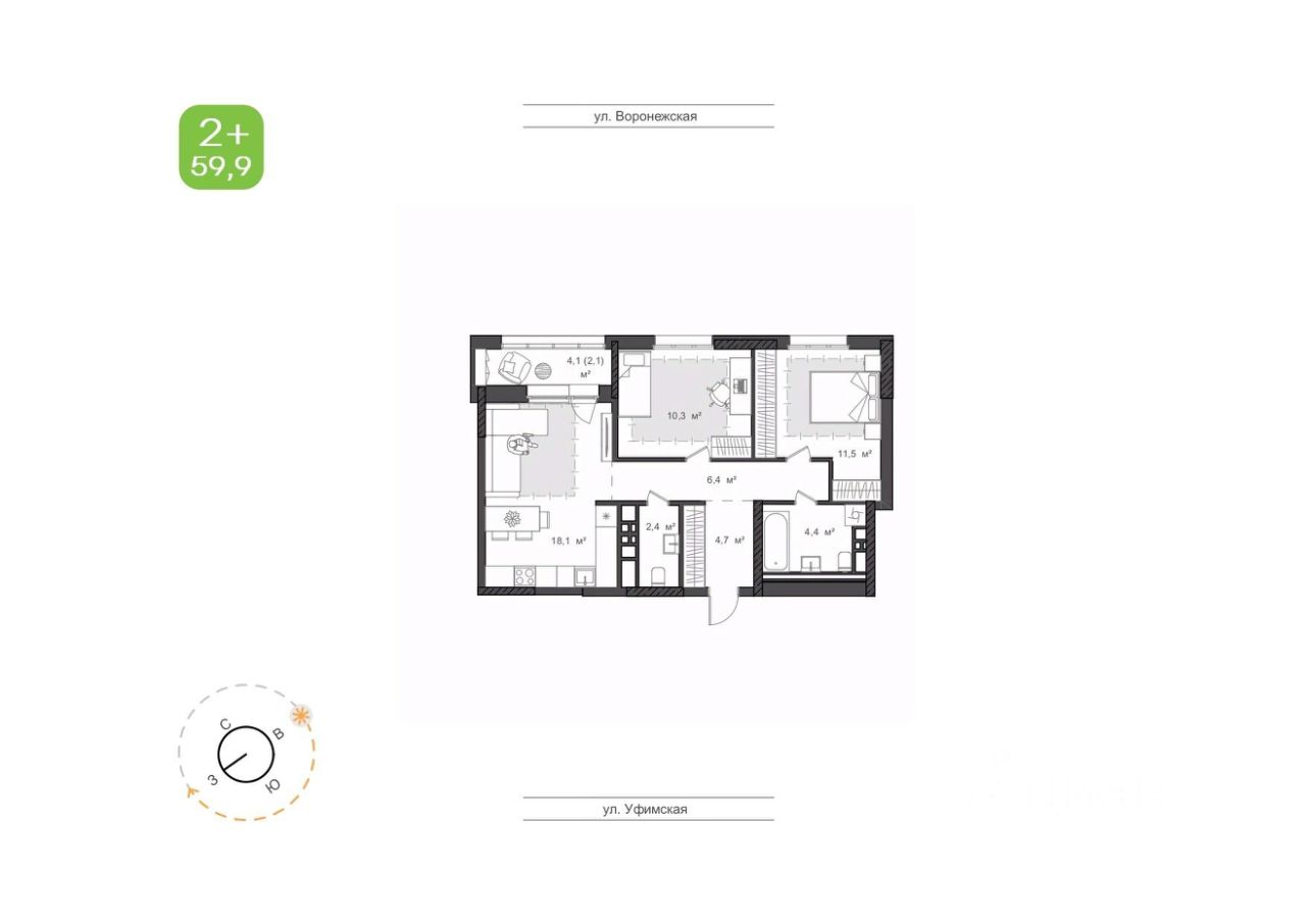 Окна квартиры выходят на ул. Воронежскую - наблюдайте за жизнью города, попивая кофе на лоджии в кухне-гостиной.