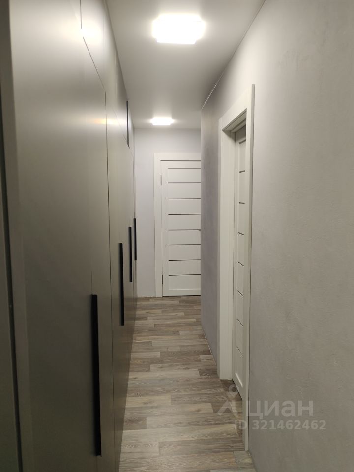Выполнен ремон в задержанных тонах, обои под покраску, плитка в сан.узле с встроенным люком ( доступ к счётчикам), подвесной унитаз, в прихожей большой встроенный шкаф. Вместо второго сан. узла установлены дополнительные полки для хранения и служит прачечной.