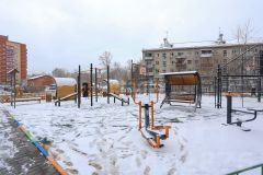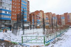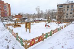 Двор обновлен в 2024 года, разделён на зоны для малышей и детей постарше.