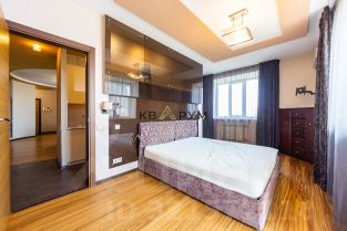Квартира с современным, качественным дизайнерским ремонтом из дорогих материалов. Уютные теплые тона в интерьере создают комфорт и стиль. Установлены энергосберегающие стеклопакеты, итальянские межкомнатные двери, надежная входная металлическая дверь. Полы в комнатах с паркетом, кухни и прихожей — керамогранит. Двухуровневые декоративные натяжные потолки. Совмещенный санузел с кафелем, душевой зоной, раковиной с тумбой, стиральной машиной и водонагревателем на 100 л. Застекленный балкон с видом на город — отличное место отдыха.