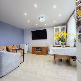- капитальный ремонт по всей квартире (разрешённая перепланировка, натяжные потолки, выровнены полы и стены, заменена электропроводка, заменены межкомнатные двери и радиаторы отопления)