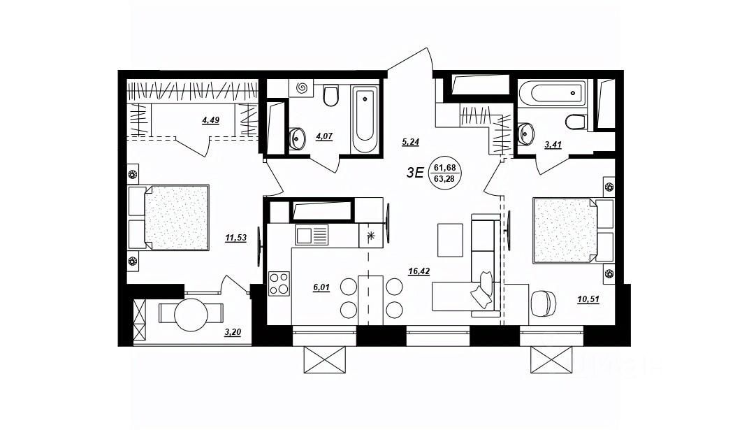 Продаётся 3-комнатная квартира в строящемся доме (Жилой дом 2), срок сдачи: II-кв. 2027, общей площадью 63.28 кв.м., на 6 этаже. Новый жилой комплекс "ГОЛЛАНДСКИЙ КВАРТАЛ" от Специализированного застройщика "Свой Квартал" расположен по адресу: г. Хабаровск, по ул. Демьяна Бедного.