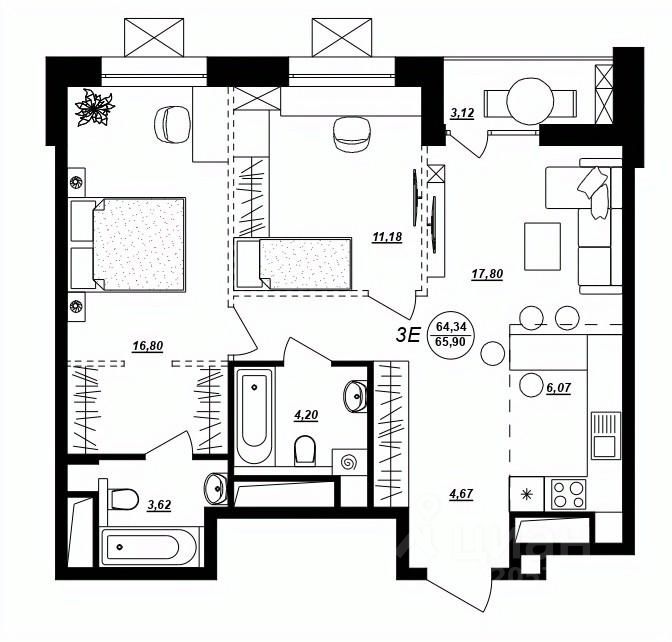 Продаётся 3-комнатная квартира в строящемся доме (Жилой дом 2), срок сдачи: II-кв. 2027, общей площадью 65.9 кв.м., на 14 этаже. Новый жилой комплекс "ГОЛЛАНДСКИЙ КВАРТАЛ" от Специализированного застройщика "Свой Квартал" расположен по адресу: г. Хабаровск, по ул. Демьяна Бедного.