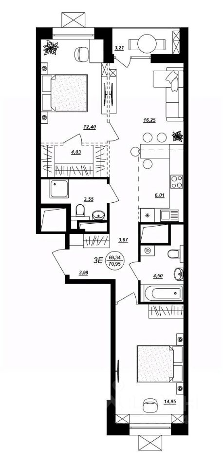 Продаётся 3-комнатная квартира в строящемся доме (Жилой дом 2), срок сдачи: II-кв. 2027, общей площадью 70.95 кв.м., на 7 этаже. Новый жилой комплекс "ГОЛЛАНДСКИЙ КВАРТАЛ" от Специализированного застройщика "Свой Квартал" расположен по адресу: г. Хабаровск, по ул. Демьяна Бедного.