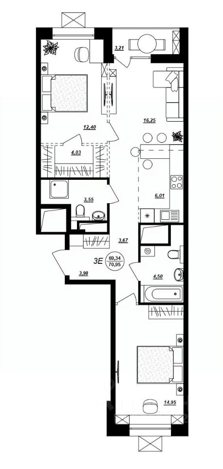 Продаётся 3-комнатная квартира в строящемся доме (Жилой дом 2), срок сдачи: II-кв. 2027, общей площадью 70.95 кв.м., на 11 этаже. Новый жилой комплекс "ГОЛЛАНДСКИЙ КВАРТАЛ" от Специализированного застройщика "Свой Квартал" расположен по адресу: г. Хабаровск, по ул. Демьяна Бедного.
