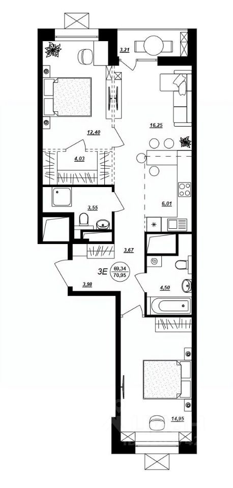 Продаётся 3-комнатная квартира в строящемся доме (Жилой дом 2), срок сдачи: II-кв. 2027, общей площадью 70.95 кв.м., на 12 этаже. Новый жилой комплекс "ГОЛЛАНДСКИЙ КВАРТАЛ" от Специализированного застройщика "Свой Квартал" расположен по адресу: г. Хабаровск, по ул. Демьяна Бедного.