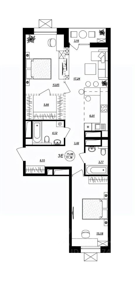 Продаётся 3-комнатная квартира в строящемся доме (Жилой дом 3), срок сдачи: II-кв. 2027, общей площадью 77.38 кв.м., на 1 этаже. Новый жилой комплекс "ГОЛЛАНДСКИЙ КВАРТАЛ" от Специализированного застройщика "Свой Квартал" расположен по адресу: г. Хабаровск, по ул. Демьяна Бедного.