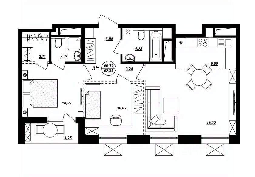 Продаётся 3-комнатная квартира в строящемся доме (Жилой дом 3), срок сдачи: II-кв. 2027, общей площадью 62.35 кв.м., на 1 этаже. Новый жилой комплекс "ГОЛЛАНДСКИЙ КВАРТАЛ" от Специализированного застройщика "Свой Квартал" расположен по адресу: г. Хабаровск, по ул. Демьяна Бедного.