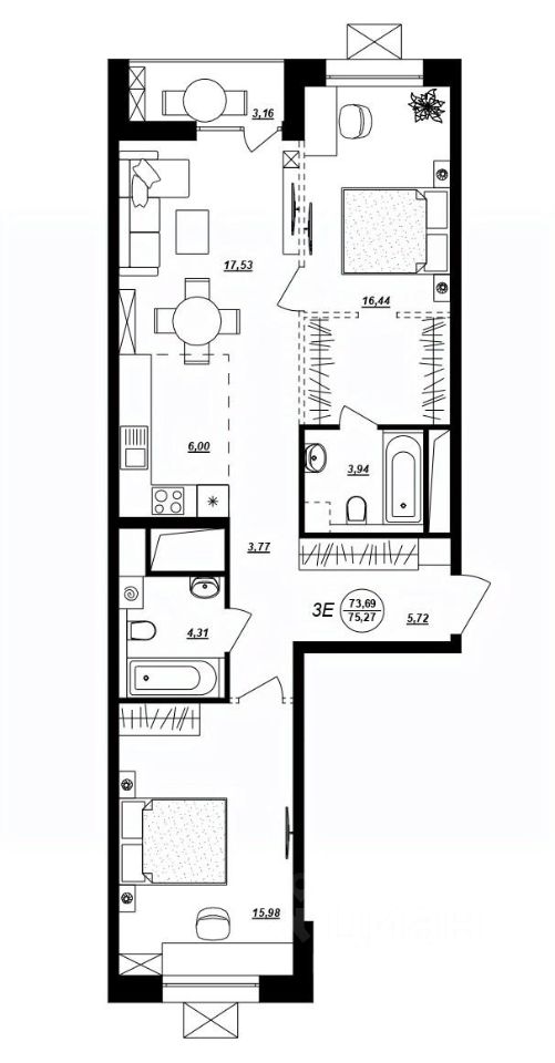 Продаётся 3-комнатная квартира в строящемся доме (Жилой дом 3), срок сдачи: II-кв. 2027, общей площадью 75.27 кв.м., на 1 этаже. Новый жилой комплекс "ГОЛЛАНДСКИЙ КВАРТАЛ" от Специализированного застройщика "Свой Квартал" расположен по адресу: г. Хабаровск, по ул. Демьяна Бедного.