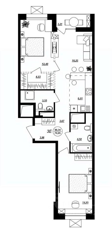Продаётся 3-комнатная квартира в строящемся доме (Жилой дом 3), срок сдачи: II-кв. 2027, общей площадью 70.95 кв.м., на 4 этаже. Новый жилой комплекс "ГОЛЛАНДСКИЙ КВАРТАЛ" от Специализированного застройщика "Свой Квартал" расположен по адресу: г. Хабаровск, по ул. Демьяна Бедного.