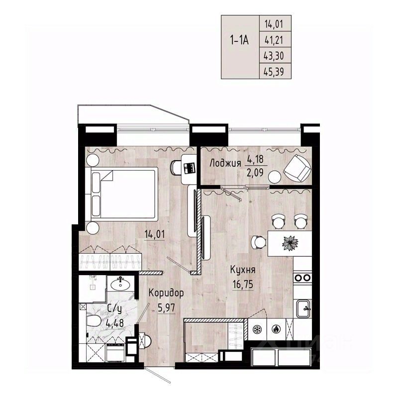 Квартира свободной планировки для воплощения индивидуального дизайна. Установлена входная дверь, радиаторы отопления, приборы учёта, стеклопакеты в алюминиевом профиле. Выложены стены сан.узла.