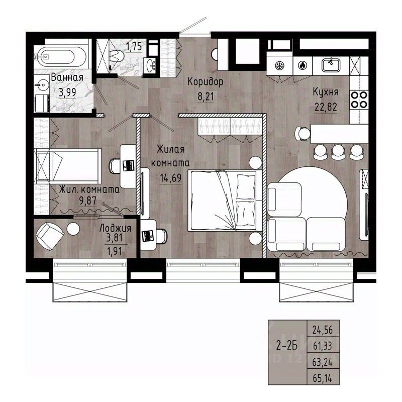 Квартира свободной планировки для воплощения индивидуального дизайна. Установлена входная дверь, радиаторы отопления, приборы учёта, стеклопакеты в алюминиевом профиле. Выложены стены сан.узла.